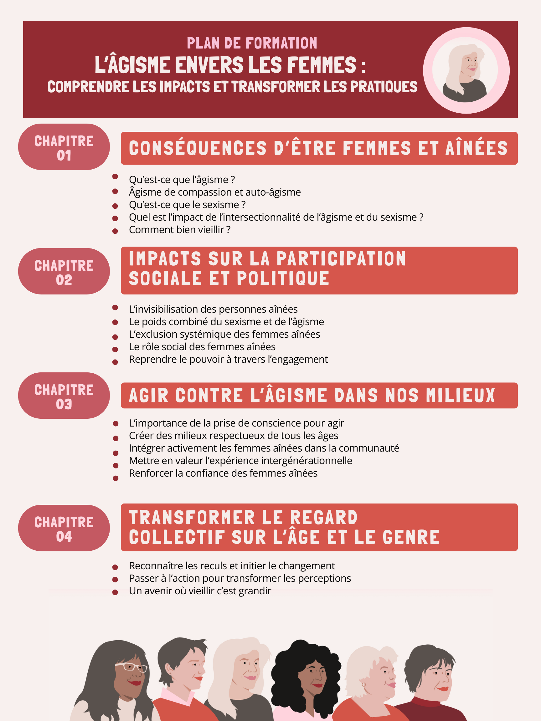 L’âgisme et le sexisme poussent aux marges de notre société les femmes de 65 ans et plus tout en les empêchant de participer pleinement à la vie sociale, politique et économique de notre communauté.